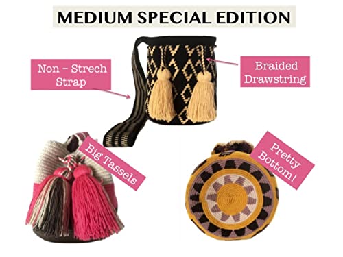 • ❤️ You will love this Colombian purse! It comes with braided drawstrings, big charm tassels, design at the body and bottom with a woven sturdier strap (It does not stretch over time).