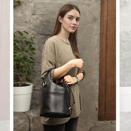 • DELICATE DESIGN: Bucket handbags for women crafted from soft vegan leather, bucket bags combines ethical style with durability. Drawstring purse accented with delicate hardware and a drawstring closure, purses for women offers both functionality and elegance.