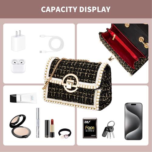 • FASHION DESIGN - This crossbody clutch purse is made of PU faux leather, leather lining, with sturdy gold hardware and pearl, chain strap.