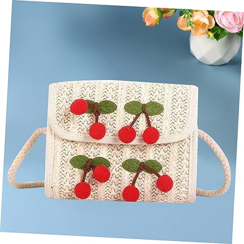 Straw Bag for Women - Cherry Shoulder Bag, Cute Straw Purse, Woven Crossbody Cluth, Stylish Beach Handbags, Travel Sling Wallet, Summer Daily Decoartion 20 x 16 x 8cm 5