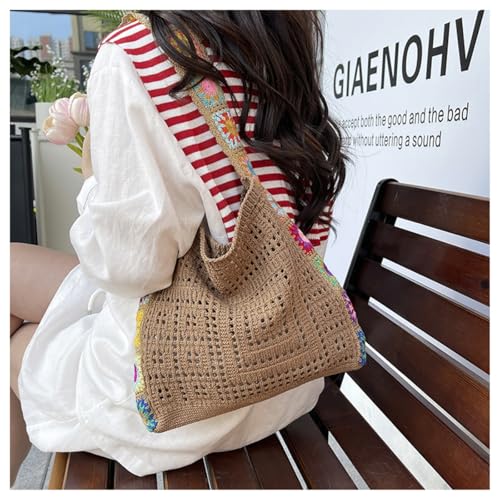 HOT ! Women's Boho Embroidery Crossbody Bag Crochet Beach Bags for Women Hollow Out Crochet Knit Shoulder Bag Crochet Tote Bag