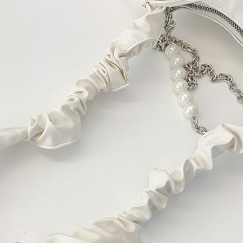 More information about Elegant Pearls Pleated Underarm Shoulder Bag for Women Fashionable PU Leather Crossbody Purse with Bows Decoration
