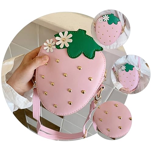HOT ! Ciieeo Strawberry Shape Purse with Rivets, Crossbody Purse Bag Cellphone Shoulder Bags Clutch Fruit Shaped Wallet Pu Phone Shoulder Wallet for Women Girl Pink