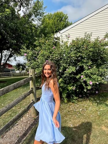 Women's Spaghetti Straps Homecoming Dresses Short Chiffon A Line Bridesmaid Dresses with Pockets 5