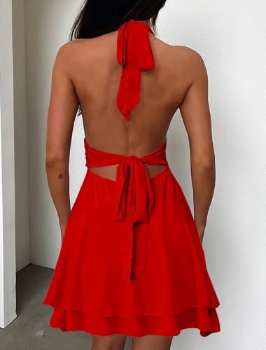 More information about Women's Halter Deep V Neck A-line Mini Dress Ruched Waist Short Party Dresses
