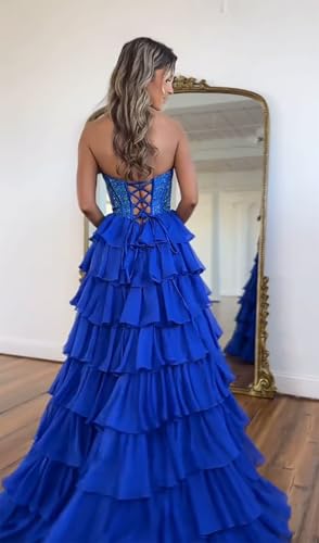 Prom Dresses for Women Sparkly Sequins Tiered Chiffon Formal Dress with Slit Strapless He5095 5