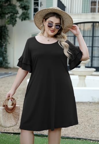Nemidor Plus Size Casual Dresses for Curvy Women Summer Ruffle Sleeve T-Shirt Swing Mini Dress with Pocket 14-26 1