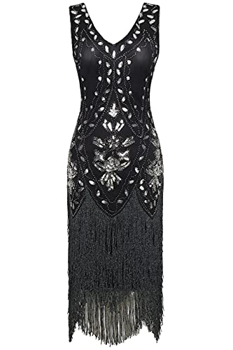 • Design: A pretty embellished art deco dress for wedding party prom, with sexy deep V neck, bodycon fitted style, midi length, and sleeveless. It has three layers of fringes, which waterfall-like hangs well.
