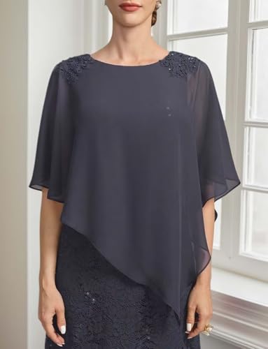 Women's Mother of The Bride Dresses for Wedding Sequin Laces Beaded Capelet Chiffon Long Formal Evening Party Gowns 4