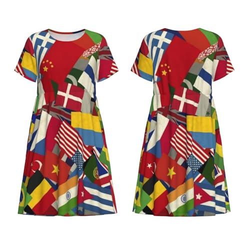 Women's Short Sleeve Dress Different Countries National Flags Summer Sundress Casual Midi Dress 1