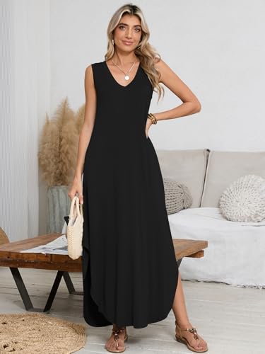 • Features : loose fitting, v neck, side split hem, sleeveless sundress. These plus size maxi dress for women are so flowy, hangs well, flattering and can be dressed up or down