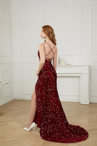 Sequin Mermaid Prom Dresses Long for Women 2025 Spaghetti Straps Sparkly Formal Evening Party Ball Gowns with Slit 4