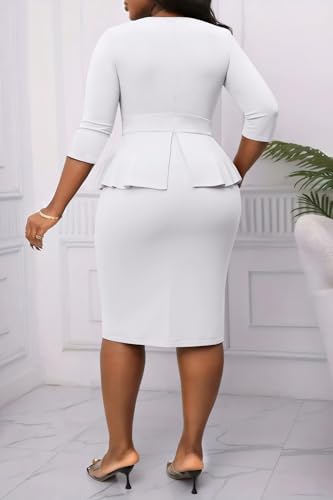 Runwind Plus Size Dress for Curvy Women Church Work Bodycon Dresses Vintage Peplum 3/4 Sleeve Sheath Pencil Dress 3