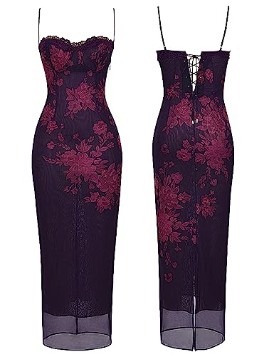 More information about Women Sexy Backless Satin Maxi Dresses Spaghetti Strap Floral Print Dresses Slim Fit Elegant Night Party Outfits