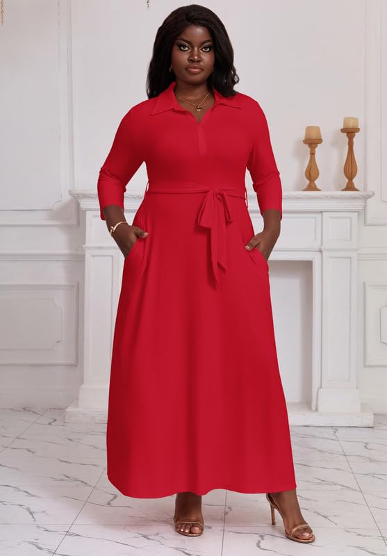 HOT ! Maxi Dresses for Women Casual V Neck 3/4 Sleeve Long Church Dress Semi Formal Outfits with Pockets