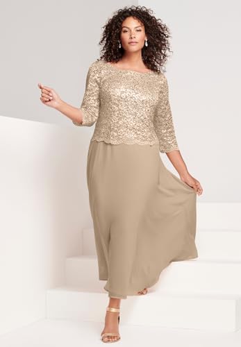 HOT ! Roaman's Women's Plus Size Lace Popover Dress