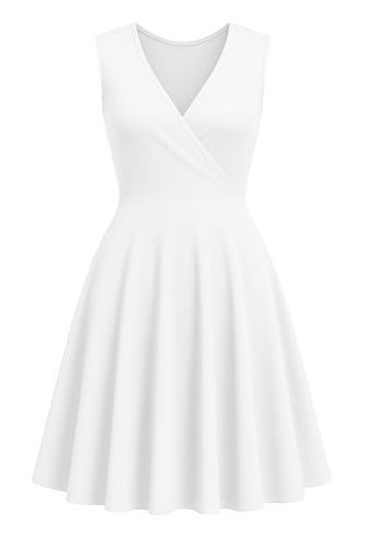 • 【Design】: The classic wrap v neck shape of this tank dress for women elongates the neck line and shows elegance. The sleeveless design showes your beautiful arm line, knee length cut of the short summer dress makes it perfect for casual wear.