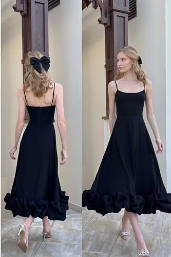 • Details:The flounce midi dress has spaghetti straps fitted bustier top and tea length a-line skirt.The hem is trimmed with 3D flounce,which makes the prom dress look unique.Elegant flared prom dress is suitable for all ages.