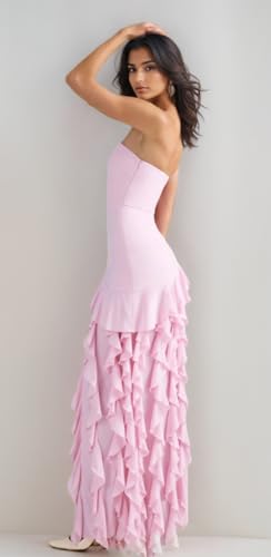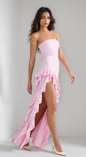 • Features:Women's stretchy tight strapless prom dress with slit,long hi low mermaid cascading ruffles bodycon summer party dresses for women,use stretch fabric and zipper up at side.This high low tube pleated sleeveless corset floor length formal evening gowns is elegant and charming,and wearing it will make you pretty.