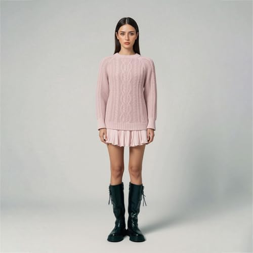 HOT ! Women Crewneck Cable Knit Sweater Mini Dress, Sweater Dress with Skirt, Cable Knit Sweater Mini Dress, for Women