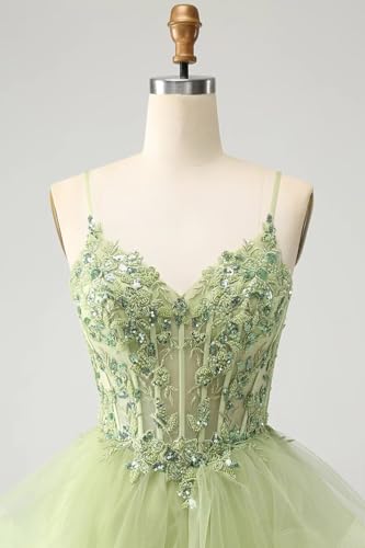 More information about Lace Applique Tulle Homecoming Dresses for Teens Spaghetti Straps Short Tiered DAMA Quinceanera Prom Dress