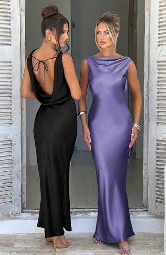 HOT ! High Neck Prom Dress Sleeveless Satin Cocktail Party Maxi Dress Bodycon Bridesmaid Dress with Tie Back