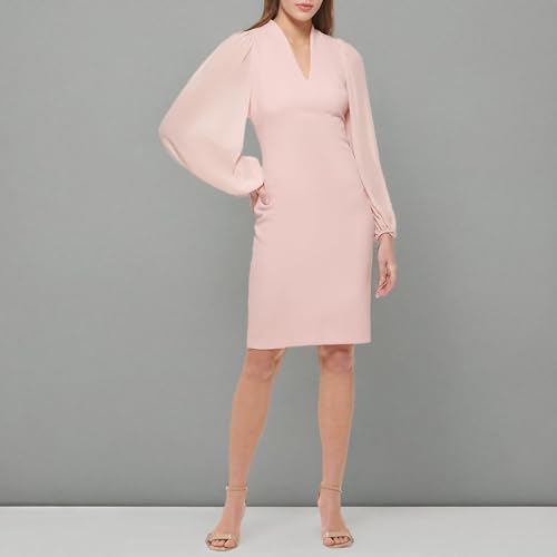 HOT ! Vince Camuto Women's Chiffon Balloon Sleeve V-Neck Crepe Sheath Mini Dress