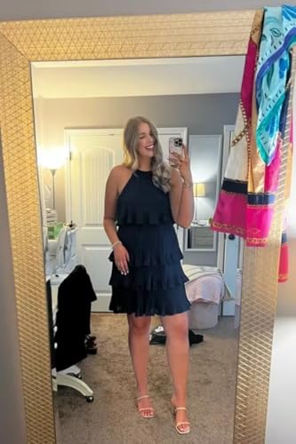 • Halter chiffon short homecoming dresses for teens 2025,a line sexy pleated short prom dress, sleeveless layered cocktail party dresses, above knee length glitter mini homecoming dress, simple tiered graduation dress for evening party , fully lined.