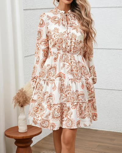 BTFBM Women Fall Dresses 2025 Floral V Neck Long Sleeve Tiered Ruffle Boho Swing Flowy A-Line Mini Dresses Vacation 4
