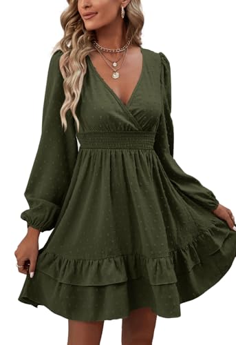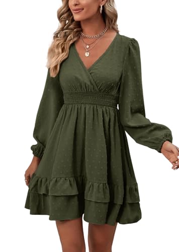 More information about Rooscier Women's Wrap V Neck Swing Ruffle Swiss Dots Long Sleeve Mini Dress