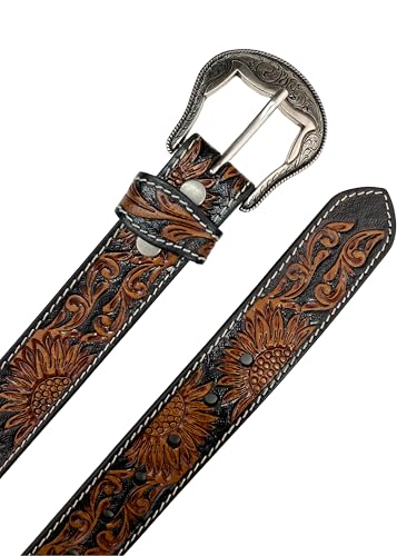 Western Belt for Men 1.5” Wide Full Grain One Piece Leather Belt with Buckle Handmade Engraved Tooled 1