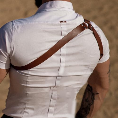 Men's Leather Body Chest Belt - Durable and Breathable Adjustable Harness for Various Occasions-Sexy Punk Chest Belt… (Brown) 4