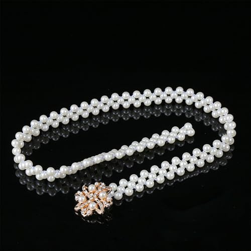 HOT ! Rhinestone Pearl Waist Belt Luxury Gold Elastic Belt Dress Crystal Waist Strap, Crystal Flower Pearl Waistband for Women and Girls