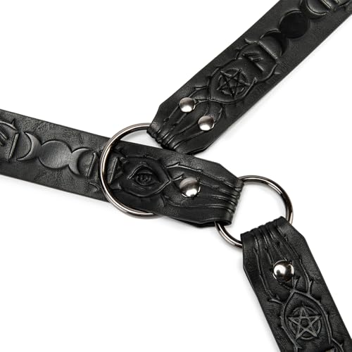• Elevate your dark vintage style with intricate moon phase and rune embossing on premium black PU leather. Perfect as a Renaissance belt, Viking costume accessory, or pirate belt for LARP, Ren Faire, and fantasy cosplay. Adds mystery to medieval, steampunk, or wizard outfits.