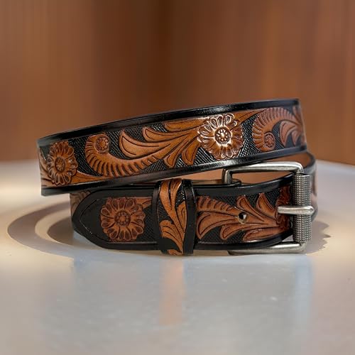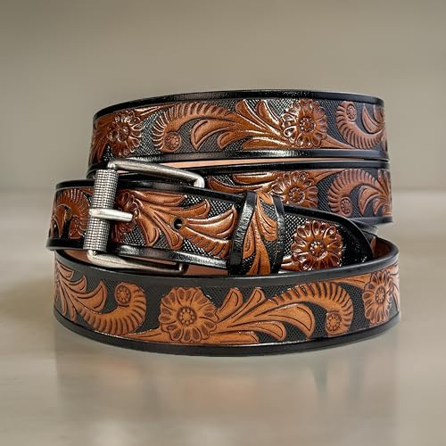Western Floral Leather Belt for Men Women Handmade Full Grain Cowboy Cowgirl Leather Belt 1.5” Wide Embossed Tooled 3