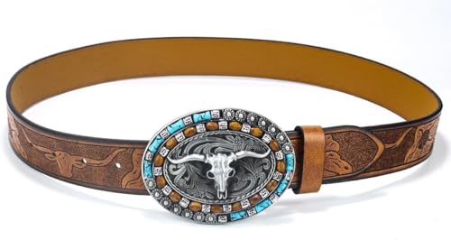 • Men's vintage cowboy longhorn bull buckle belt with silver oval turquoise & long horn bull head belt buckle, a symbol of wealth, honor and courage, suitable for dailylife wear, shows your charm.