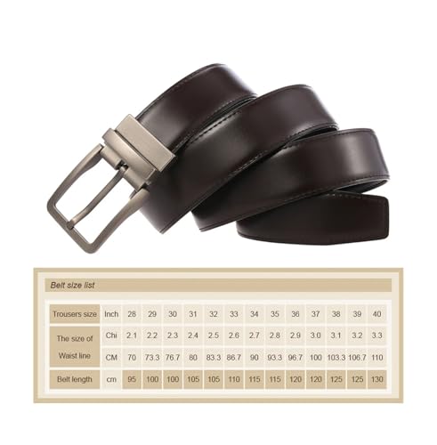 Men's Leather Belt 130cm Reversible Cowhide Strap with Alloy Pin Buckle Gold and Silver for Jeans or Trousers 7