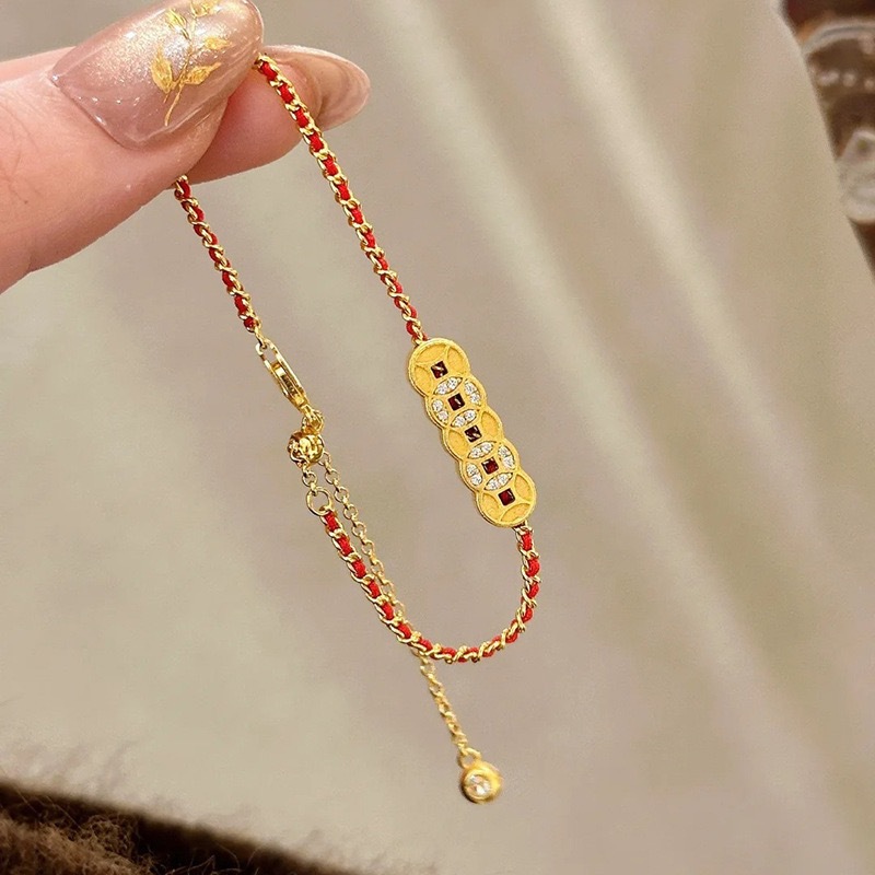Gold five emperors coin woven rope bracelet women's new light luxury retro fashion design sense versatile hand jewelry 2
