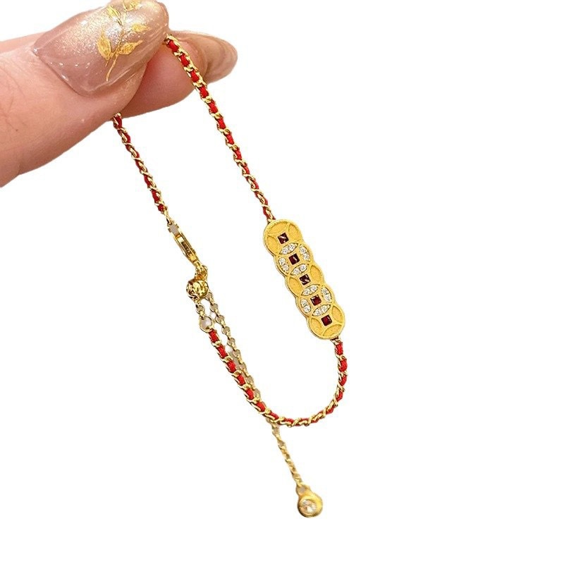 Gold five emperors coin woven rope bracelet women's new light luxury retro fashion design sense versatile hand jewelry 5