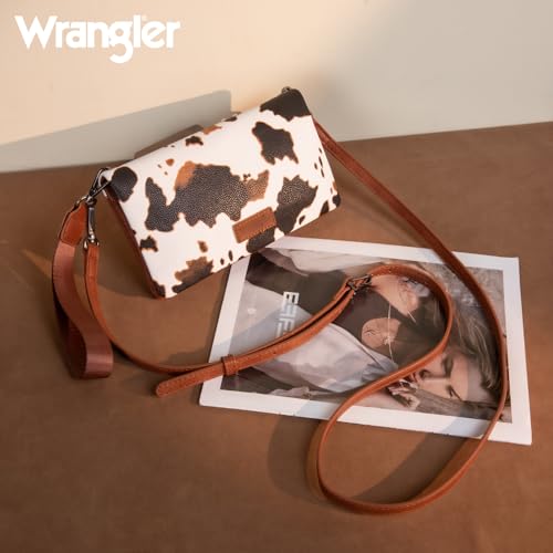 HOT ! Wrangler Cow Print Womens Wristlet Wallet RFID Blocking Bifold Clutch Purse Credit Card Holder Crossbody Bags Brown