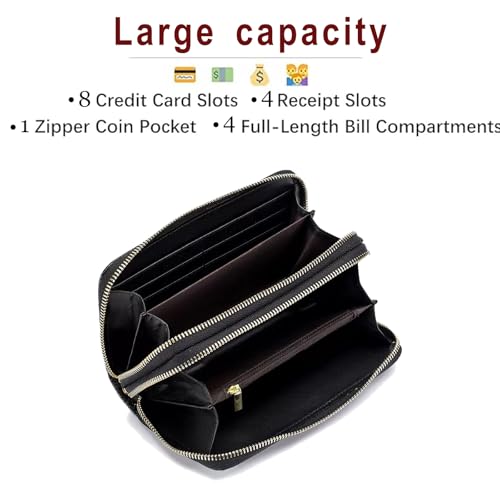 • Size: 7.87 x 4.13 x 1.77inch,roomy card holder wallet which has 16 credit card slots,4 hidden receipt slots,4 pockets and 1 zipper pocket,both sides can be used to store cell phones,passports,checkbooks,stamp cards,and other clutter,with a detachable wrist strap