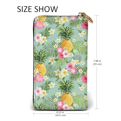 HOT ! Hawaiian Pineapple and Tropical Flowers Leather Hand Wallet for Women Long Zipper Clutch Purse for Cash Cards Coin