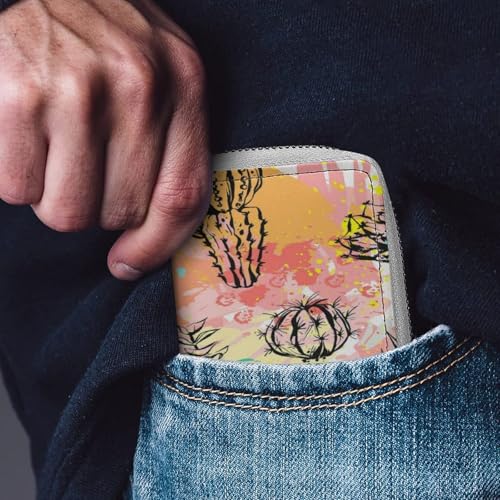 HOT ! Women Leather Coin wallet, Key Change Organizer Zipper Card Holder Purse Clutch Pouch Pocket 4.5x3.15 in Print Beautiful Cacti Cactus Flowers Texture