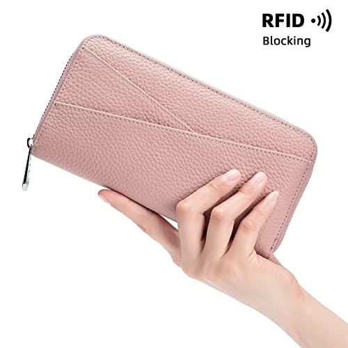 • 【Elegant Ladies Wallet】Classic shape, high quality first layer cowhide leather, simple lines, exquisite hardware, elegant and charming. With RFID blocking function, multiple card slots, coin zipper pocket, cell phone pocket, ID window, multifunctional wallet for work, travel, daily to bring you convenience.