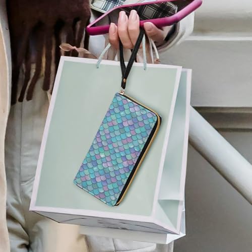 HOT ! Unisex PU Leather Wallet, Strap Design for Men Women, Portable Card Holder, Travel Ready, Beautiful Sparkling Mermaid Scales