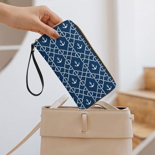 Women Travel Wallet, Zipper Closure Phone Purse, Portable Rope Wallets, Perfect for Business, Nautical Anchor Chevron Net Navy 6