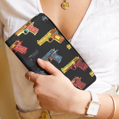Hand Gun Wristlet Wallets for Men Women Leather Purse Clutch Cute Card Holder 5