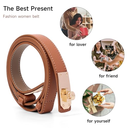 HOT ! Women's Thin Leather Belts with Turn Lock Buckle,Belt Women Adjustable for Pants Dresses Jeans Coats