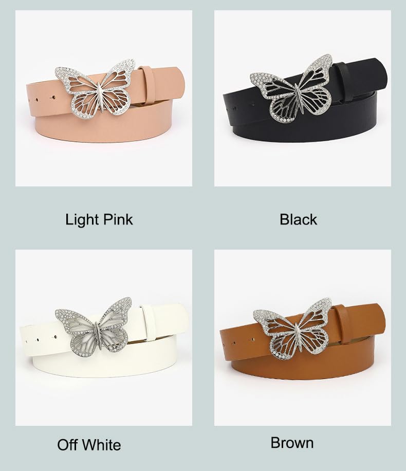 Womens Belts for Jeans Dresses Fashion Silver Rhinestone Butterfly Buckle Belt Black Brown Pink Off White 4