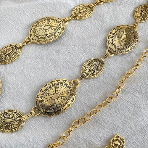 More information about Women Boho Chain Belts, Western Cowgirl Waist Links Belt Adjustable Metal Concho Metal Chain Dress Belt Hollow Out Daisy Decorated Skinny Waist Belt For Dresses